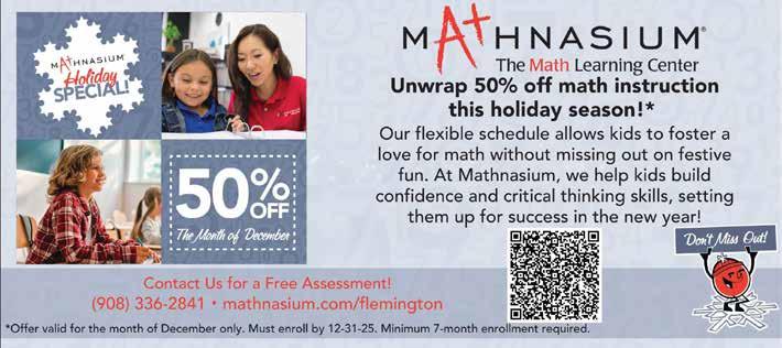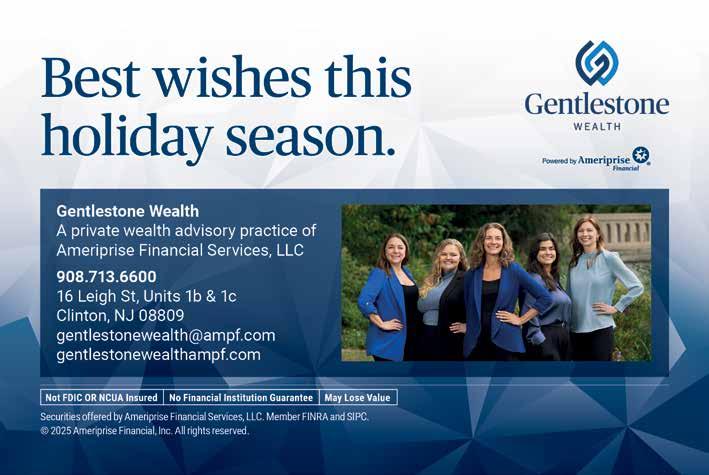 Turn to Holly Jolly Hunterdon (page 24) for all the festive fun happening nearby— from Dickens Days in Clinton to the Guild of Clinton Christmas Parade, Winter Village at the Red Mill, and Candle Light Night downtown. You’ll even find details on the Santa Express Train Ride and the Lebanon Borough New Year’s 5K Run, perfect for ending the year on a high note (and maybe justifying that extra cookie).