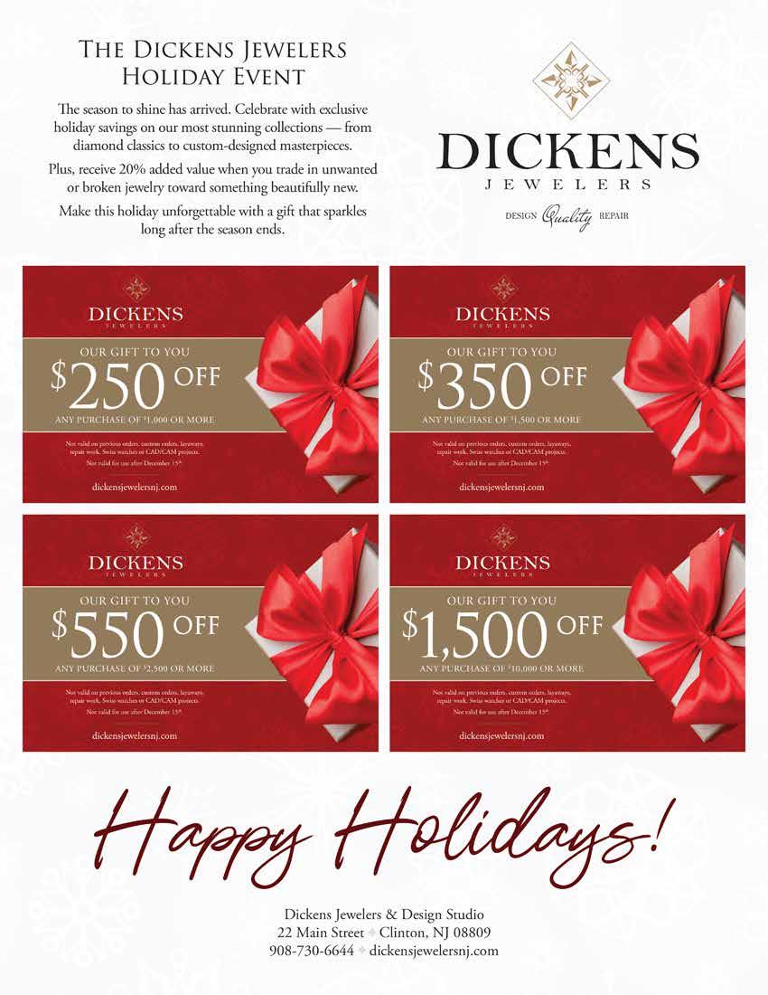 Turn to the back of this magazine to see Dickens Jewelers’ exclusive holiday sales—and find the perfect gift that shines as brightly as the season. 4 2 3 1