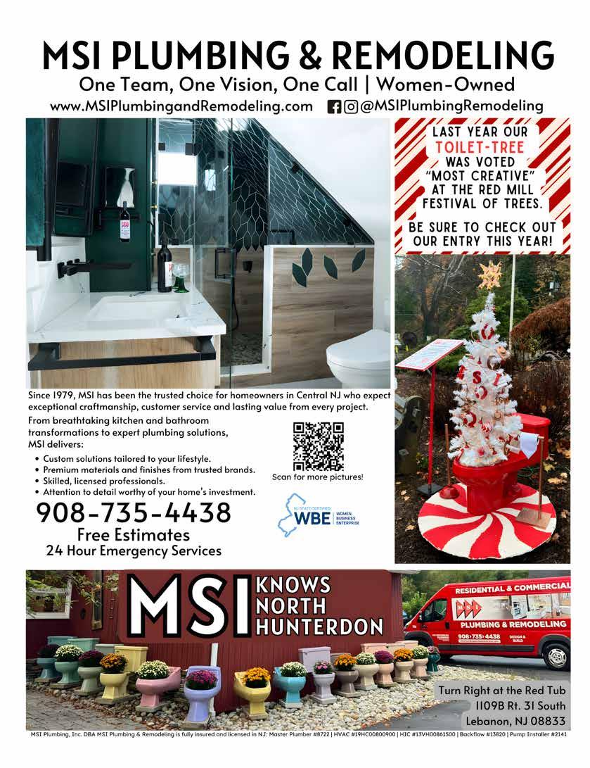 For over 25 years MSI Plumbing & Remodeling has long roots in Hunterdon County. Founded by Les Giese and Anne Thornton, the company grew from property management into a full-service shop. Their daughter, Audra Giese, grew up in the business, returned in 2018 and became president in 2021. Remodeling Manager Brad Howell started as a summer helper 35 years ago, became a partner in 2004 and now oversees projects with an eye for detail. Plumbing Manager Rich DeTorres, a licensed master plumber since 1991, keeps the service side running smoothly.