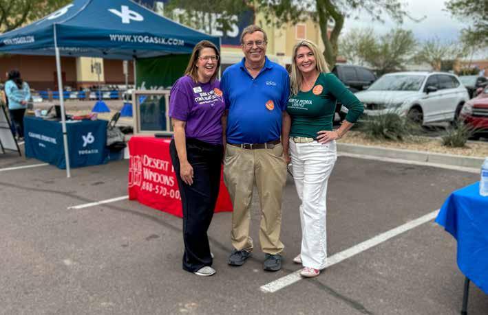 1: North Peoria Lifestyle welcomes Green Muscle Solar to the inaugural North Peoria Home Show. 2: Paul Wilson of Mr. Wilson Tinting and Jacquelyn Wilson of Mrs. Wilson Window Treatments. 3: Fenix Pool Solar & Mist brought along their 4-legged mascot to welcome visitors. 4: Councilmember Brad Shafer, Mesquite District representative, stops by the North Peoria Lifestyle booth. 5: Laura Hernandez and Jen Sinconis celebrate the opening of a second Turquoise Wine Bar 6: Stop by the Arrowhead or Peoria locations of Turquoise Wine Bar for wine and nibbles.
