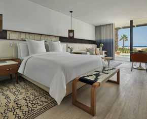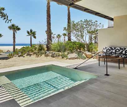 Various room options exist depending on your group size. Many of the rooms have plunge pools and ocean views. We stayed in the Sunrise 2-bedroom suite with a plunge pool. This magnificent groundfloor suite with wrap-around windows afforded us gorgeous sunrise views over the Sea of Cortez. We loved the plunge pool and walking directly out to the beach. The rooms are impeccably decorated in muted tones, reflecting the property's quiet luxury and letting nature be the star.