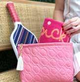 The custom quilted pouch features a fun pickleball paddle pattern. Small enough to fit inside a bigger bag but big enough for a sports towel and phone. $48 Courtgirl.com