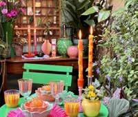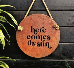 3. OUTDOOR WALL ART: Corten steel sign is 15.75” in diameter. LisaSarah.com $105 4. CITRUS FRUIT DINNER CANDLES: 3D orange and yellow citrus non-scented candles. TalkingTables.com $24.25 5. RINGO COUNTER STOOL: Indoor/ outdoor stools with rust-resistant bent metal frame. Umbra.com $200