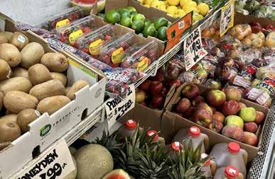 This page, bottom: Pure Food Market offers locally-sourced produce. Next page, top: Customers find a wide range of produce.