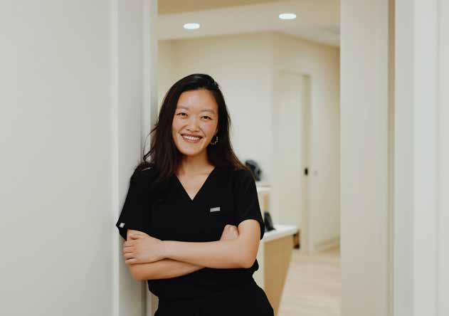 Beyond the clinical aspects, Dr. Kim takes pride in the artistic aspect of her work. “Styling your smile isn’t just about teeth; it’s about harmony with your facial features,” she explains. “Before any procedure, we design the new smile, considering everything from the health stuff like TMJ, natural bite position, gum health, and cavities, to the fun esthetic stuff like lip contours, amount of tooth show when talking, and tooth color.” As they say in biology, “form fits function” and what looks beautiful is healthy and vice versa.