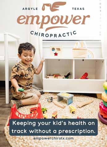 RedeemedLifeCounseling.com | 940.222.8552 Discover renewed well-being with Redeemed Life Counseling, where your mental health is our top priority. Our expanded services cater to individuals, couples, families, children, and adolescents, providing comprehensive support. Collaborating with outstanding partners, we are dedicated to surpassing your expectations. Explore our newest offerings in Group and Infertility Counseling, designed to meet your unique needs and guide you toward a more fulfilled life. NEUROFEEDBACK | MENTAL HEALTH MASSAGE | BRAINSPOTTING | INTENSIVE EXTENDED SESSIONS | EMDR | ART | IFS | PLAY THERAPY It’s time to invest in your well-being and start your healing journey! 415 US HWY 377 SOUTH, STE 202, ARGYLE, TEXAS 76226 HAIRCUTS • STYLE • COLOR • HIGHLIGHTS 2640 W University Dr., Building 1266,Unit #25 in Denton (915) 261-5118 • heidis-nook-and-cranny.square.site V @berrymanssalonstyle FAMILY & WELLNESS CHIROPRACTOR Specializing in pregnancy and pediatrics Prenatal care: ▶ Pregnancy aches and pains ▶ Balance pelvis ▶ Prepare body for labor Pediatric care: ▶ Latch issues ▶ Colic ▶ Constipation ▶ Ear infections ▶ Overall alignment checks KEEPING THE BODY ALIGNED FOR OPTIMUM FUNCTION Dr. Rachel Moore DC 817.710.5821 413 Keller Pkwy, Keller, Texas VBalignmyspinedfw 26