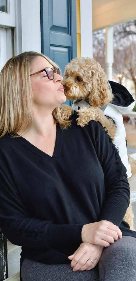 Blair Munger enjoys time with her pup at Harvest’s on-site coffee shop.