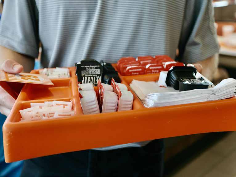 It’s not an official title with the company, but let’s call it the “ketchup concierge.” That’s the person who, after your order is delivered to your table, comes around with a tray filled with salt, pepper, extra napkins, and an impressive selection of condiments.