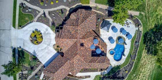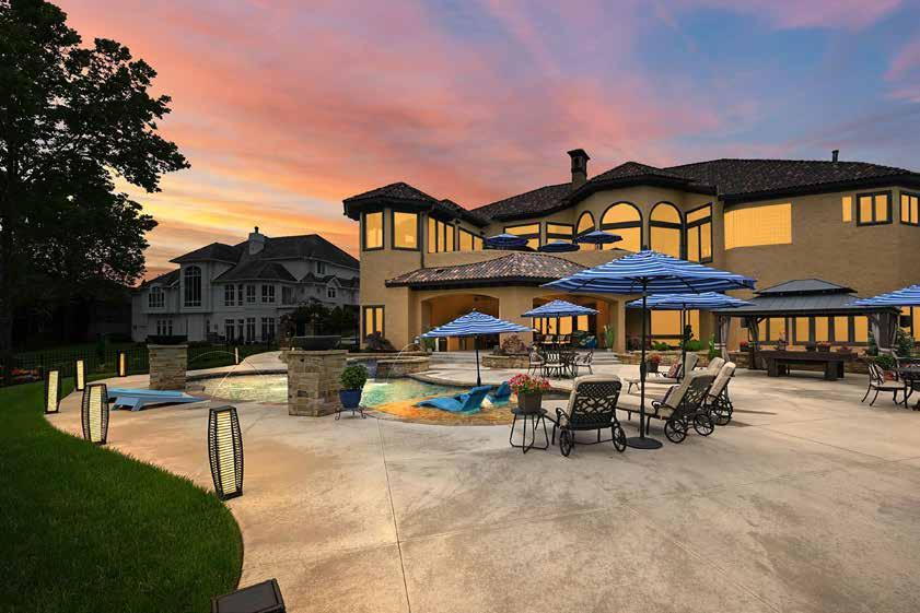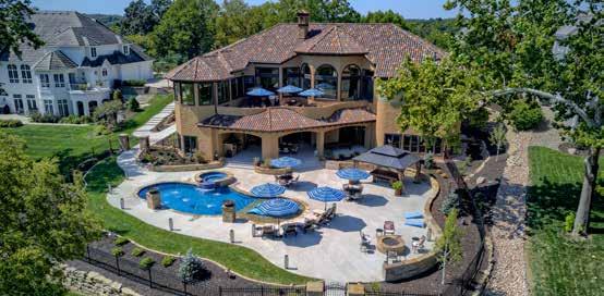 sun deck, jacuzzi, waterfalls, fountains, gas flames, and sprayers. The outdoor kitchen rounds out this perfect entertaining space with a Viking grill on the covered deck, which is pool-level. All of the old landscaping was removed with a new cleaner look and style completed by Jones Brothers Lawn Care. Rock beds were installed with plantings, enormous rock walls, a new sprinkler system, and various trees and bushes.