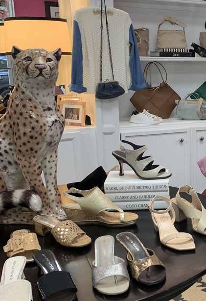 shoulder handbag, but they always have a twist. Fashion is changing like crazy, but for instance, for the fall I have a beautiful classic boot in black and in cognac coming in that has a platform, which is very big right now. I’m keeping up with fashion and I’m always looking for the next best thing, but I stay timeless. You aren’t going to come in here and find something that’ll be out of style next year. I focus on things that will last.
