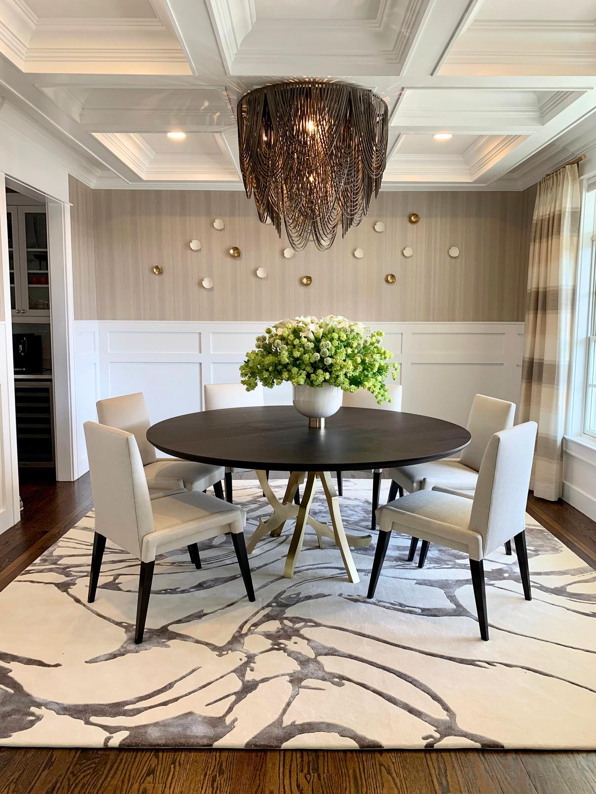 “Some of the things that we’re leaning towards are round forms. The space you have and the layout of the room affect how round you can go. If we can do it really big, it’s a fantastic look! If we can’t, we play with the round form with a round arm, a round cocktail table. We can even do a round rug to complement all of the other elements within the space. There are so many different things that you can do with a round form!”
