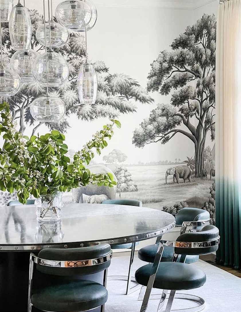 “2024 also lends itself to color, pattern, and boldness. Things used to be very light and neutral. Now we’re seeing the other end of the spectrum, which is a little more bold and wild. When you blend the two together, you can create something truly special. Some of my clients have requested murals! Many of the wallpaper companies now are creating mural-like wall coverings. A lot of these bold choices are making for stunning appearances.”