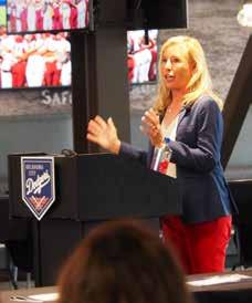 1: OU Softball Coach Patty Gasso speaks at the OKC Dodgers Baseball Foundation’s “Stepping Up to the Plate.”
