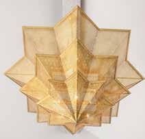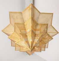 2. A massive, angula luminaire, formed from wrought iron sheets of perforated metal in an antique gold leaf finish. Evokes power, strength and masculine energy.