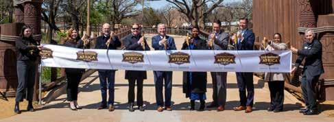 1: Guests pass into the OKC Zoo’s new Expedition Africa exhibition. 2: Crowd at official ribbon cutting ceremony March 26 for the new OKC Zoo’s exhibit, Expedition Africa, presented by the Inasmuch Foundation. 3: The celebration included drumming performances by the Dallasbased Bandan Koro African Drum Ensemble. 4: Representatives from the City of Oklahoma City, Inasmuch Foundation, Oklahoma Zoological Society and the Zoo participate in the ribbon cutting. 5-7: Just a few of the animals to be found in the Expedition Africa exhibit