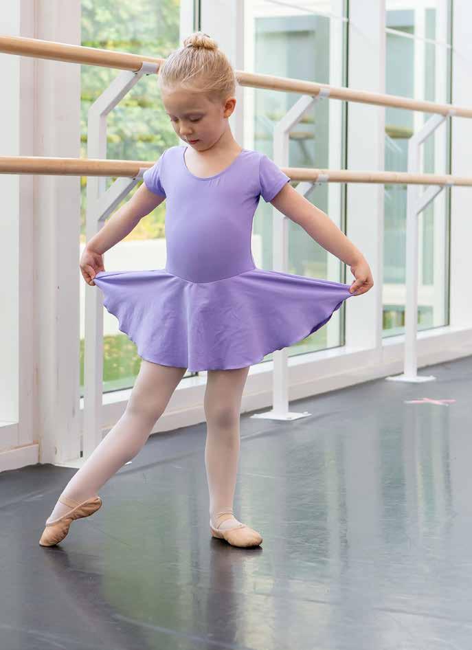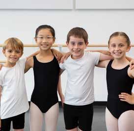 Top: Summer Intensive students practice a “Fish Dive” in OKC Ballet’s spacious Studio A Middle: Contemporary partnering rehearsal during Summer Intensive Bottom: Preparatory Division students of The Yvonne Chouteau School of OKC Ballet Right page: A Children’s Division student shows her tendu à la seconde!