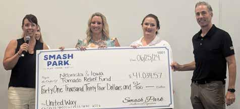 1: Tom Wyman, Jim Berg, and Fred Tafoya distributed wristbands to participants at Hops for Harmony. 2: SmallCakes was one of many vendors who paticipated in Hops for Harmony at Werner Park. 3: Community Members enjoyed the Market in the Park and the Beer Garden at Papillion Days. 4: Smash Park donated $41,000 to the United Way Tornado Relief Fund at their ribbon cutting. 5: The ice cream social was a hit at the Papillion Days Family Fun Night. 6: The carnival rides at Papillion Days attracted a large crowd. 7: The Titans showed their team spirit at the Papillion Days Parade.