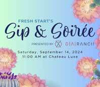 Fresh Start Auxiliary Board’s annual fall luncheon returns to Phoenix's Chateau Luxe with Sip & Soirée presented by D.A.Ranch Estate Vineyards. This signature event helps provide access and resources that support Arizona women on the path to self-sufficiency. The afternoon will begin with a sip and shop of local vendors, activity stations, and much more followed by entertainment, luncheon, and a prize raffle – all for a good cause. Sponsorships avail able. freshstartwomen.org/events/ fresh-start-sip-and-soiree