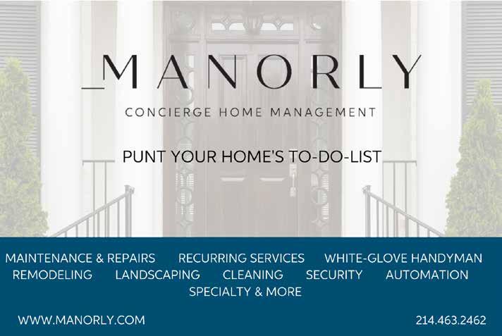 EXPERIENCE THE UPTOWN DIFFERENCE Your Premier Appliance Professionals Dallas’ Trusted Luxury Repair Experts Our factory trained technicians service all major household appliances. Wine Cellars / Outdoor Grills / Ice Machine Cleaning / Refrigerators / More All services are backed by our 2 Year Parts & Labor Warranty. Schedule Your Service Today uptownappliancerepair.com | 214-761-8300 6621 Snider Plaza STE 275 Dallas, TX 75205 $ 145 Service Fee Waived When you mention City Lifestyle Magazine