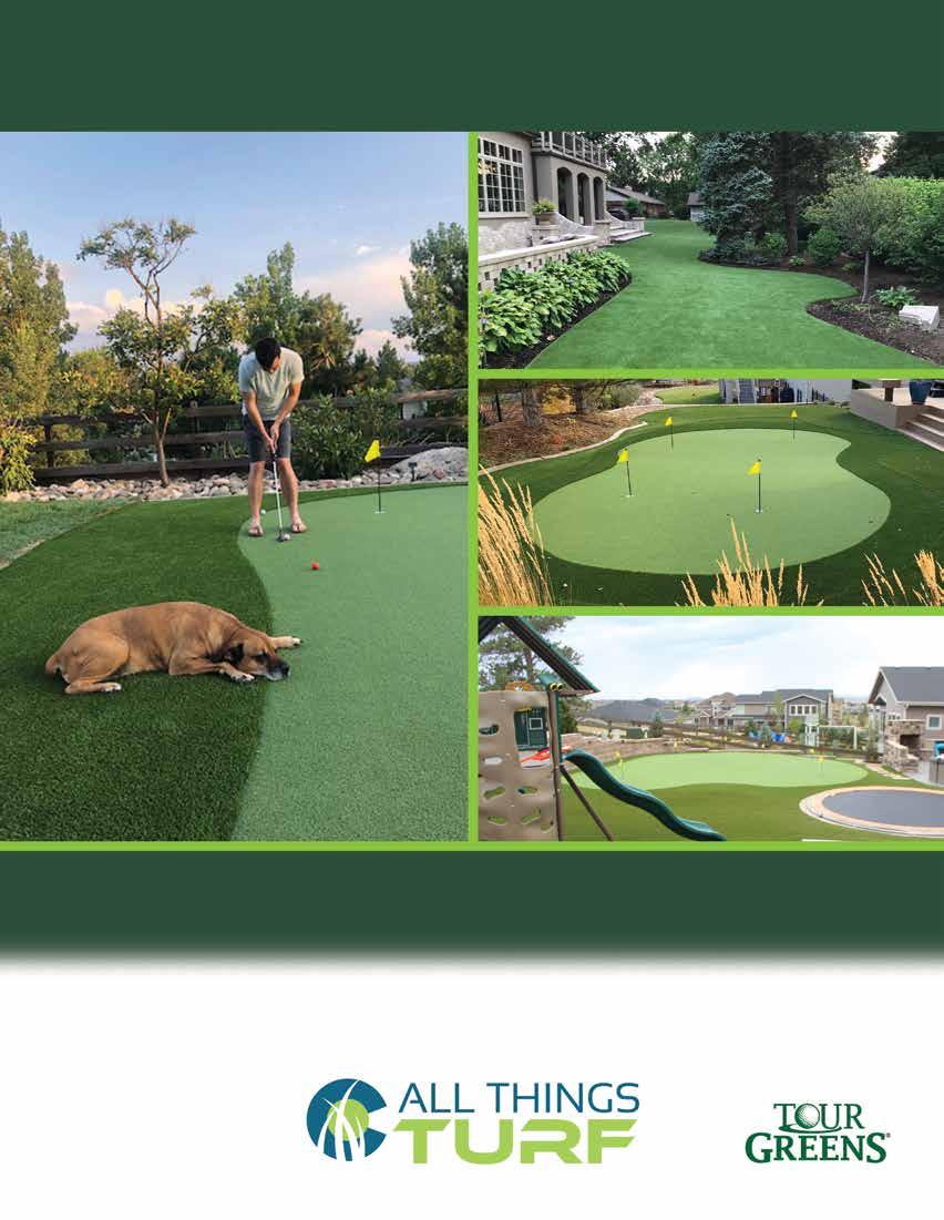 720-450-2626 www.allthingstur f.com begins here! Ar tificial Grass • Pet Tur f • Indoor/Outdoor Golf Greens • Bocce Ball Cour ts • Pickle Ball Cour ts • Ar tificial Tur f Supplier and Installer • Installation Training and Consulting Available • Low Maintenance/Pet Friendly/Ar tificial Grass • Complete Back yard Recreation Solutions Showroom/Warehouse 14550 E. Easter Ave. Suite 900 Centennial, CO 80112 Transformed Back yard Your • Tour Quality Synthetic Putting Greens • Maintenance Solutions: Elec tric Power Brooms & Ox yTur f Cleanser • TCOOL Cooling Infill Supplier- keeps tur f up to 50 degrees We’re Here for ALL Your Synthetic Tur f Needs!