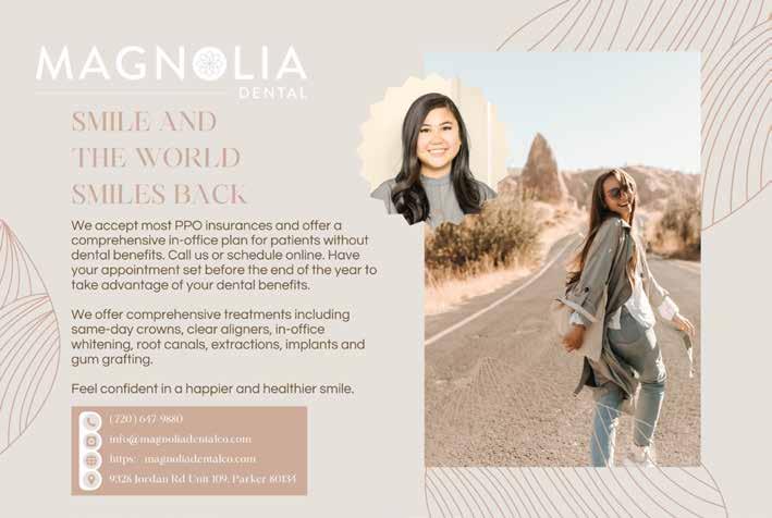 Our holiday issue this year features Mrs. Claus and her efforts to spread joy throughout our community one event at a time. This includes the presentation of Downtown Parker’s Holiday Market. It’s an honor to share about those who make our town of Parker truly magical. This includes the Parker Chamber Foundation and its support for dozens of nonprofits and organizations in Parker.