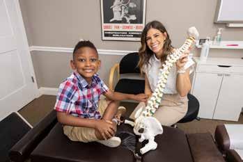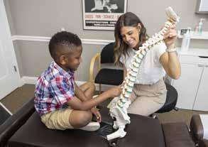 Dr. Stephanie Gates using a spine model to show her young patient exactly what is going on with his back.