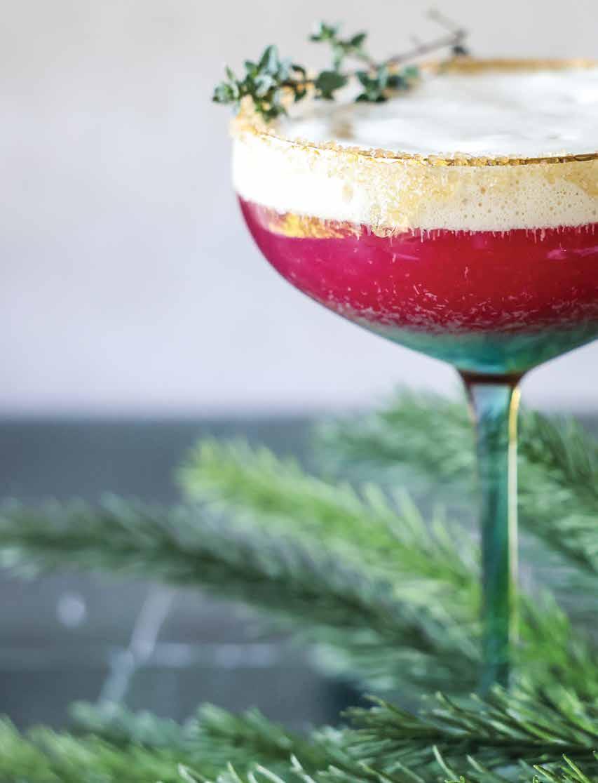 A bright, elegant cocktail with a foamy top and a hint of holiday spirit.