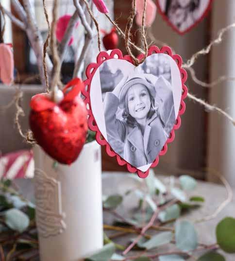 A few fresh flowers or a handmade centerpiece add charm without feeling fussy. For added impact, use cake stands, trays, or stacked books under a tablecloth to create height, and stick to a cohesive color palette so the display feels intentional rather than cluttered. Another standout tradition is creating a Valentine’s Tree. This eye-catching centerpiece is both decorative and versatile, making it a favorite that can be reused year after year. Begin by collecting fallen branches and painting them white for a clean, cohesive look. For the base, a thrifted or repurposed white ceramic jar works beautifully and adds character. Secure the branches with floral foam, then cover the top with moss for a finished appearance. Choosing branches with different heights and natural curves creates movement and makes the tree feel organic. Once it’s built, this tree becomes a blank canvas that can be reused for other holidays simply by swapping out what hangs from the branches.