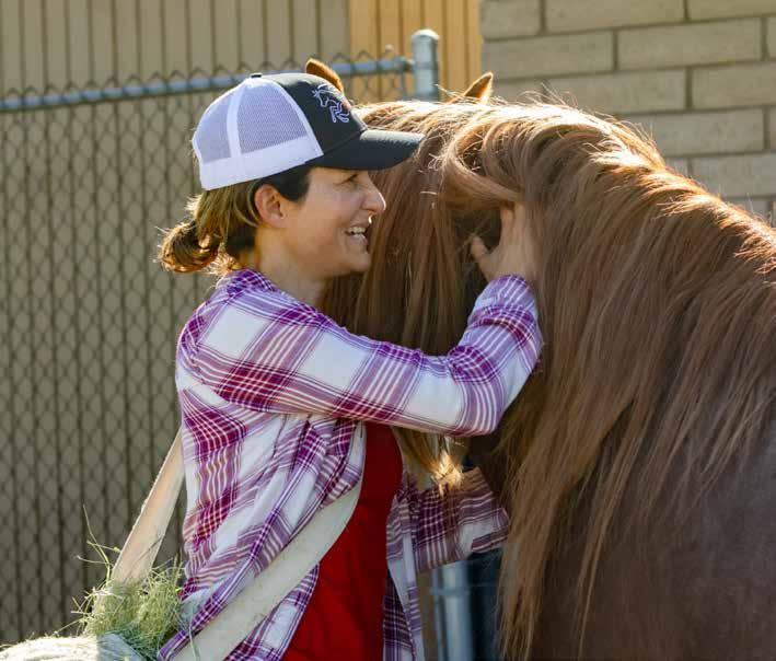 and minerals. Depending on the heat, Siarra adds light training, hoof care, or movement exercises. In winter, when pasture grass is limited, she provides multiple small meals to mimic natural grazing. “Every season centers on their rhythm and wellbeing,” she says.