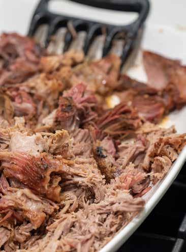 • Kosher salt, cracked black pepper and favorite dry rub. This version used carnitas, Ragin Cajun and Angelo’s pork seasoning equally. John Henry’s, Salt Lick, and especially Grub Rub are also great pork rubs. Make your own with 2 tablespoons each of sugar, dark brown sugar, paprika, coarse salt, cracked black pepper and garlic powder, 1 tablespoon each of onion powder, ground chipotle chili, adobo or cayenne powder and guajillo chile, and 1 ½ tsp each of ground cumin and dry mustard. Experiment and sub ingredients and portions for preference.