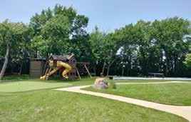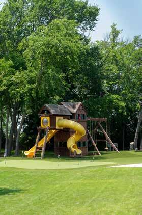 Adjacent to the playground, there is a putting green. This meticulously maintained section of the yard dedicated to the art of putting is constructed using high-quality artificial turf specifically designed for golfing purposes. To add an element of friendly competition, a pickleball court has recently been added. The family can practice their skills, engage in friendly matches, and experience the joy of the fastest growing sport in America. These elements provide further opportunities for active play, imagination, and