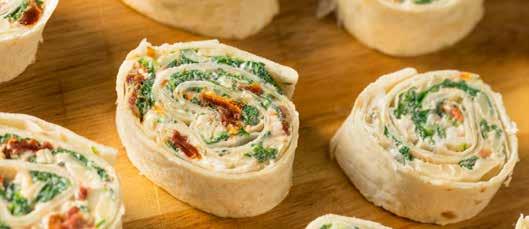 Sun-dried Tomato: use either a sun-dried tomato or spinach tortilla and spread with cream cheese before layering with sundried tomatoes, baby spinach, fresh basil leaves, minced garlic, and a sprinkle of Parmesan cheese