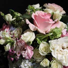 4. Add Texture: Intersperse white spray roses, wax flowers, bells, and pink lisianthus among larger blooms.