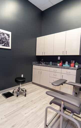 And unlike a traditional doctor’s office, there are no long waits. In fact, the lobby is more like a man cave than a waiting room. Flat-screen TVs beam sports while comfy leather chairs pair with complimentary drinks and snacks to make some patients reluctant to go back to work.
