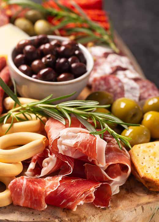 One of the hardest parts of creating a board is aesthetics. How do we fill it without breaking the bank or having it look empty? Finding variety packs will be a lifesaver for your pocket. Then, it’s all about placement. Scrunch up prosciutto and spread it around. Take salami and make it into fluffy roses by placing it piece by piece over the rim of a glass in a circular motion. Cut your cheeses into a variety of shapes; cubes for piling, rectangular to layer and fan for larger spaces, and slice thicker cheeses like gouda or brie into triangles. Fresh, in-season fruits are a great addition for both color & space. Add strawberries and grapes or get creative with pineapples or watermelon for the hotter days.