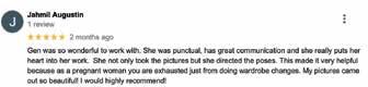 Because Gen books up about two months in advance, she recommends that clients set up their appointment as soon as they can. She says she intentionally schedules mothers between 29 to 34 weeks of pregnancy. She offers customized payment plans, and her on-site time is built into the overall fee.