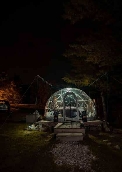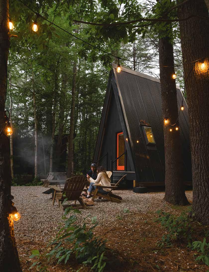 Once an iconic tour destination for those exploring New England, the Desert of Maine now offers a quiet, newly renovated campground surrounded by tall pines, sandy dunes, and a gentle stream. A variety of modern A-frame and shedstyle cabins are available in addition to waterproof canvas glamping tents with everything you might need for a comfortable night’s stay. The self-service camp store is stocked with snacks, firewood, and essentials, and families can take advantage of the site’s fossil dig, gemstone village, natural playground, hiking trails, mini golf course, and snack bar. Visit the 1800s farmhouse to learn about the history of the Tuttle family and discover how the desert came to be, take a train ride through the landscape, or head into Freeport for outlet shopping, breweries, and more. desertofmaine.com