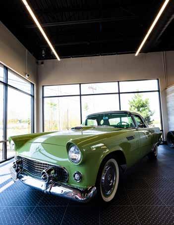 The founders describe Throttle as a country club for auto enthusiasts: members have access to a lounge, kitchen and bar, pool tables, shuffleboard, an HD golf simulator, two triple screen full-motion racing simulators, and plenty of additional amenities. With an influx of people who are still working from home since the pandemic, Throttle has become a de facto office-away-fromhome for car lovers. “We have a dedicated member workspace with an AV-equipped conference room, free wifi, and space for people to work in, but members can really set up anywhere they want,” Kevin says.