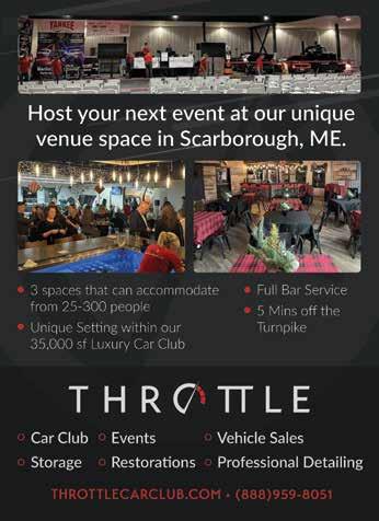 Auto enthusiasts: Be sure to catch an event at Throttle Car Club in Scarborough, featured on page 32 and home to Maine's largest membership and social club for car lovers. We're guessing you haven't indulged your automotive aspirations quite like this before.