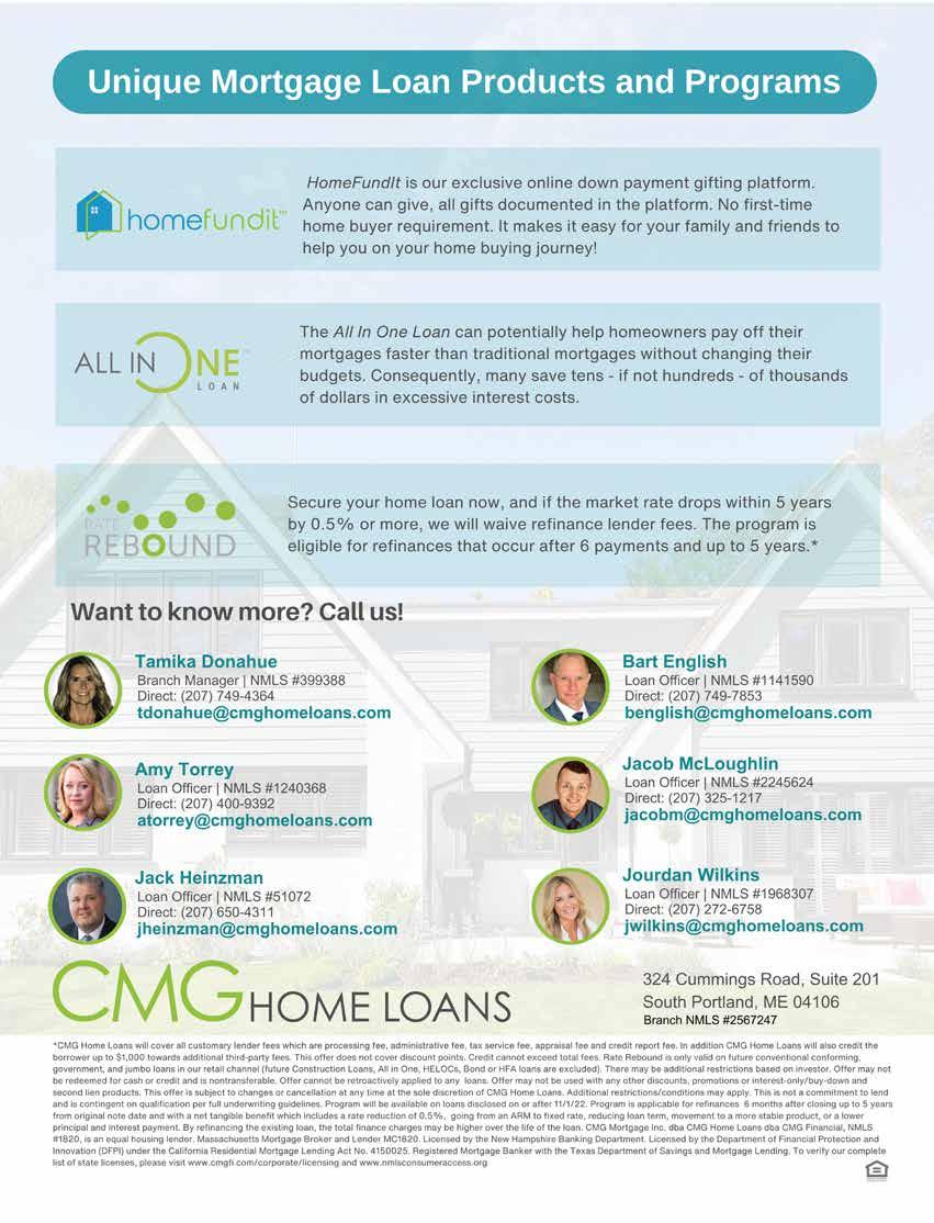 Our products are specifically designed to provide creative solutions to your unique challenges. We take the time to understand your situation and create a mortgage just for you. Our client-focused approach guides each customer individually through the defining moment of buying their new home with confidence. You can rest assured that we have the experience, knowledge, and work ethic to find the best loan for your circumstances and to get it processed quickly. We are local to your area, understand local conditions, and our decision-makers are just a call away and right here in Maine.