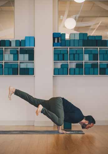 classes and teachers to find your preference. Both the Fundamentals Flow and Beginner's Series classes are great starting points, though new students are warmly welcome at all Greener Postures classes. “Yoga is such a big word, but it falls across a huge spectrum,” she says. “It could be a heated flow or a calmer nidra class. If you’re dealing with an injury, you might like a deep stretch, or maybe you’re looking to cross train, or you want sleep assistance. It’s a matter of selfstudy to determine what type of yoga resonates with you.” Puopolo adds that patience is key. “When I first started, I wanted to do everything. I had such a competition mentality, thinking ‘I’m going to hit this mat and do it all,’ but the body takes time. I’ve been doing yoga for a while and there are still poses that I’m trying to navigate. It can be frustrating, but you have to remember that it doesn’t happen overnight—you have to work at it.”