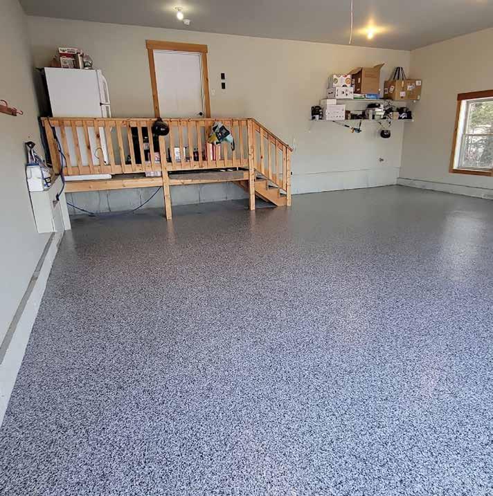 sports equipment,” explains Shattuck-Heidorn. “Plus, the decorative flake of earth tones in the new flooring accents the beauty of the nature around the home.”