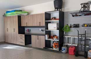 to install a cabinet or shelving due to the area vehicles require. Consider adding hanging storage to these walls to store snow shovels, yard rakes, garden hoses, and other relatively slim items.”