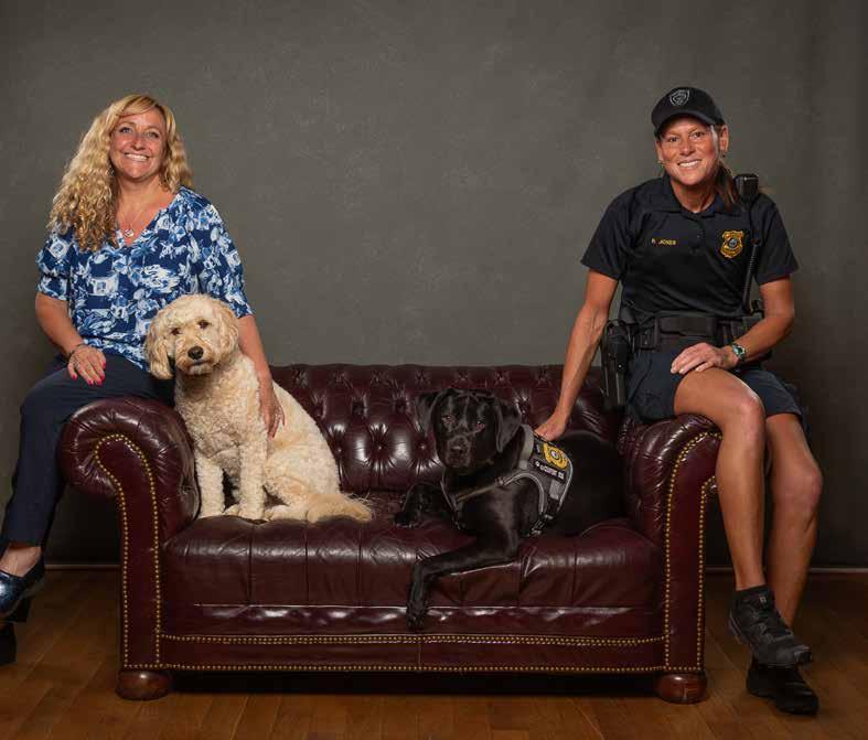 Jones is the department’s Community Outreach Coordinator and finds Mason to be an incredible asset. She and her canine partner visit schools and nursing homes and attend parades and other community events. The gregarious pup quickly disarms citizens who may fear the police, breaking down barriers and building trust. “He wins people over,” says Jones. “Mason’s for everybody—he’s the community’s comfort dog.”