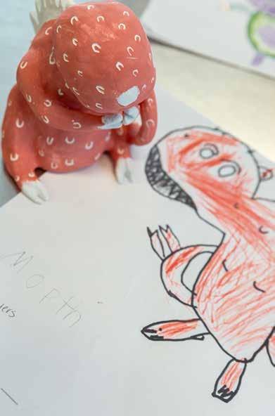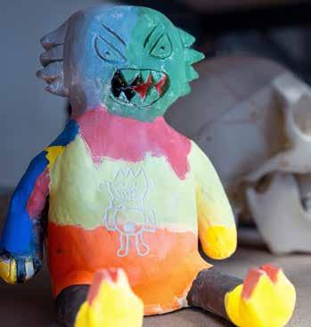 brainstorming as they integrate texture and color, considering thoughtfully their monsters’ unique physical features and powers. “When they get talking about it,” he says, “their creativity flows.” The delight of originality does not stop with the children, for Bastille also creates his own monster alongside them.