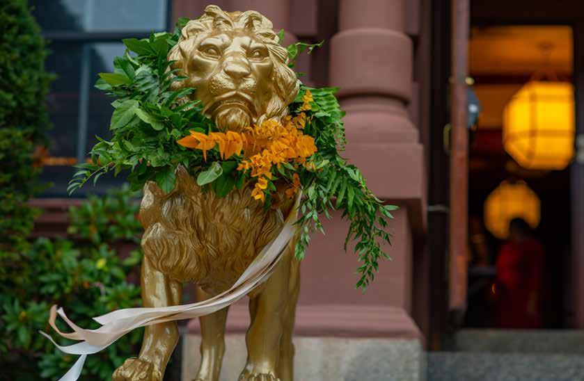 symbol of the legendary Frank Jones, who owned The Rockingham when it was a hotel in the 1800s. Our Lion Project is a display of visitors posing with the iconic lions. Guests also delight in the dining room’s mahogany paneled walls, colorful stained-glass windows, and perfectly preserved fresco ceilings—still breathtaking after all these years.