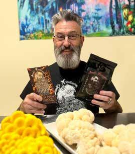 William Dunkley (Dunk) started his Brentwood-based mushroom emporium selling wild mushrooms to chefs and specialty markets. While he foraged as a kid in Errol, NH, he started wild mushrooming as an adult. The short season made scaling a challenge, so after a successful cloning experiment, Dunk began growing his own varieties. Then Covid hit, restaurants shuttered, and Dunk had 2000 pounds of mushrooms growing weekly with no stopping. The ever-resilient entrepreneur capitalized on his culinary background to expand his mushroom-based products. Today, Dunk offers nutritious energy bars, coffee, pot pies, chili, and his favorite and most recent addition, a Chaga Chai dark chocolate bar made in collaboration with Manchester-based Loon Chocolate.