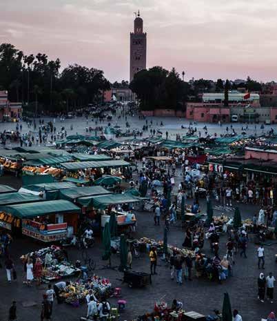 On the two-hour drive to Marrakech, embrace the calm from lush valleys dotted with olive, walnut, and juniper trees before entering the sensory-busting experience of the city—think vibrant souks, Moorish