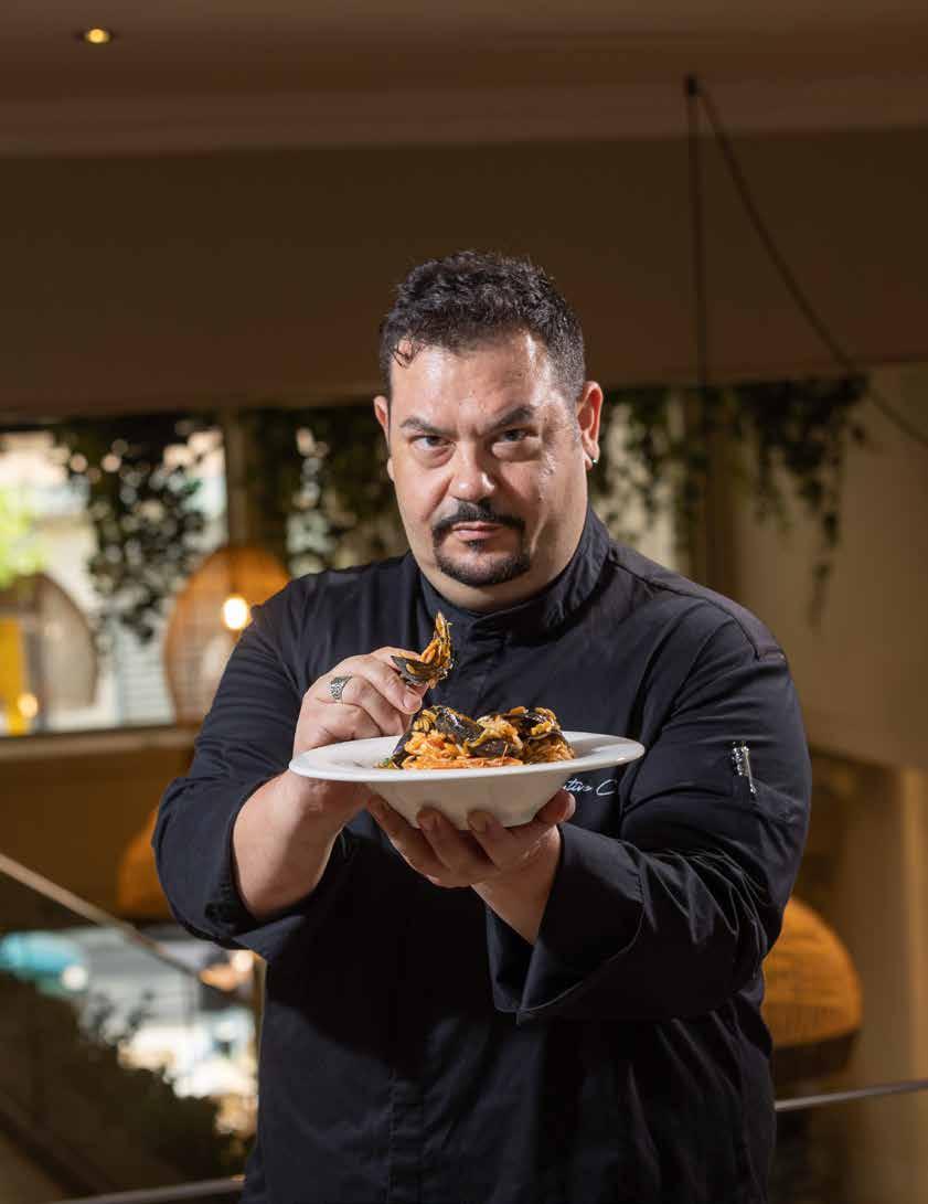 Her favorite meal starts with the tequewños, fried buttered dough filled with cheese and served with a sugarcane mango sauce. “It takes me back to my childhood memories in Paraguay,” she explains.