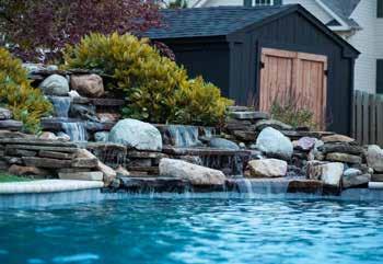 LEFT: Backyard Creations waterfall feature during the day.